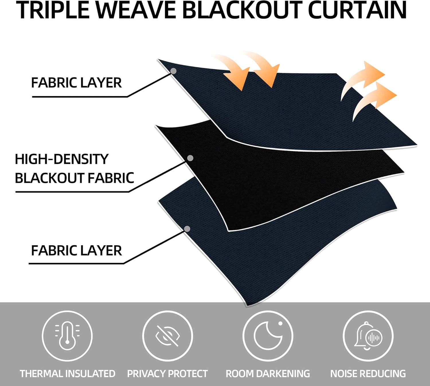 - SUN BLOCKING & PRIVACY PROTECTION: These blackout curtains made of three-layer innovative textured fabric, durable, smooth and can block out 85% -95% light and UV rays, effectively reduce the noise and protect your sleep health and privacy(Darker colors are better)
